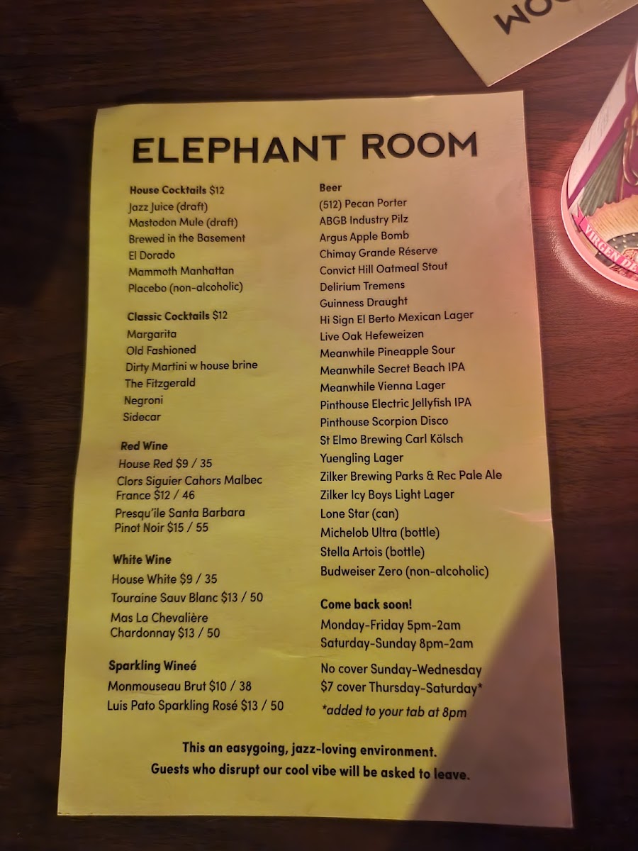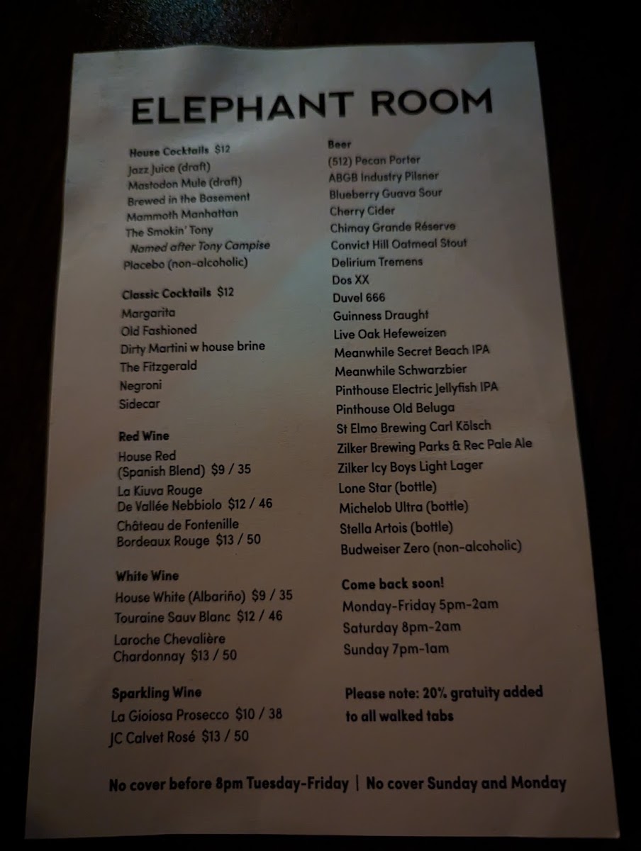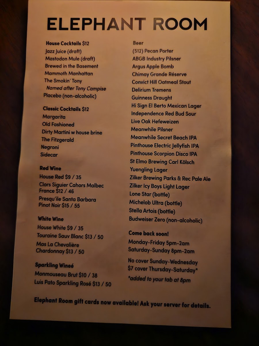 If you’re looking for a magical night filled with lively music and unforgettable cocktails, The Elephant Room is the place to be. Don’t just take our word for it; stop by, grab a drink, and create your own cherished memories at this storied Austin institution.