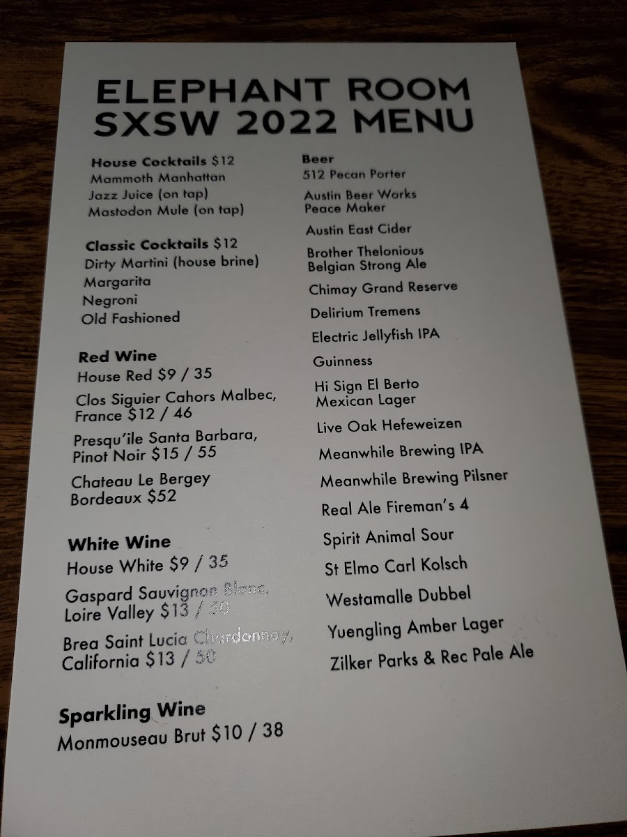 Speaking of drinks, The Elephant Room offers a curated menu of featured cocktails that perfectly complement the live music experience. Indulge in the Jazzy Fitzgerald—a refreshing blend of lemon juice, simple syrup, and angostura bitters, or opt for the Elephant Mule, which combines Deep Eddy Peach and Ruby Vodka with ginger beer for a peachy twist. For something bold, try the Jam Session Negroni, a combination of Beefeater gin, camperi, sweet vermouth, and grapefruit bitters that hits all the right notes.